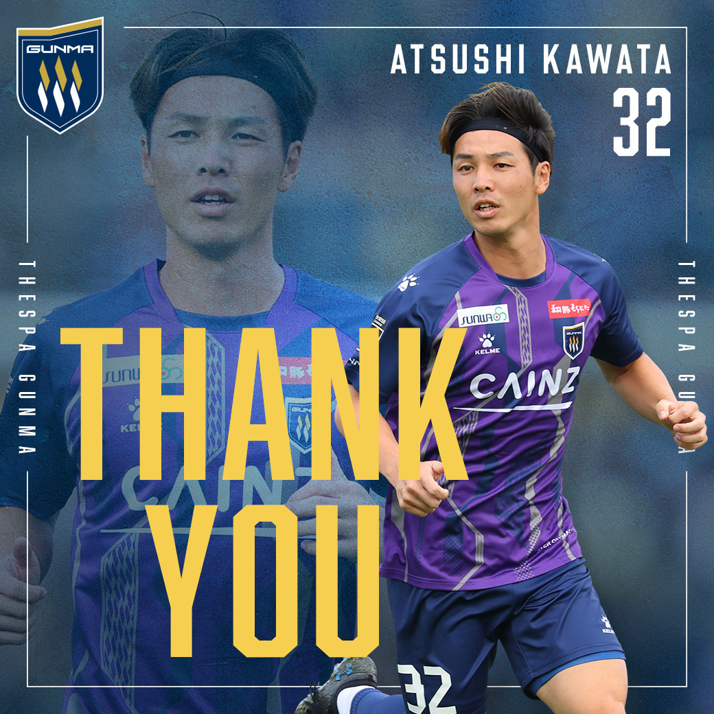 ザスパ群馬ではこの度、河田篤秀選手との契約が満了となり、2025シーズン限りでクラブを離れることとなりましたので、お知らせいたします。