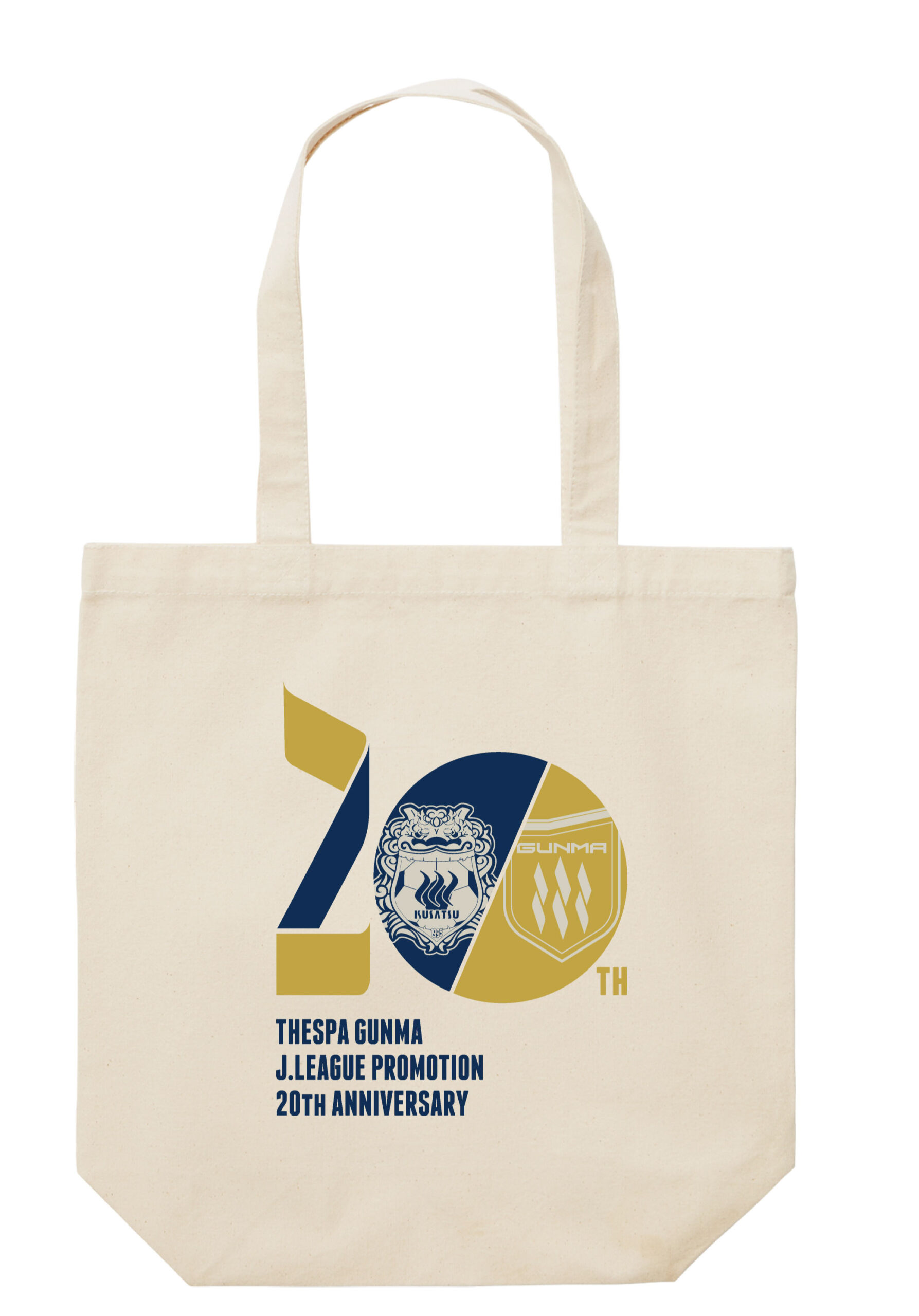 20年の歴史を象徴するクラブエンブレムと周年ロゴが鮮やかにあしらわれたトートバッグです。