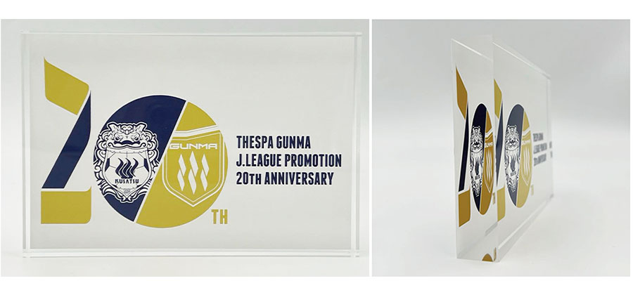 しっかりとした厚みがあり、重厚感のある仕上がりで、手に取った瞬間に記念品としての価値を実感できます。20年の歴史を象徴するクラブエンブレムと周年ロゴが鮮やかにあしらわれ、飾るだけで存在感抜群。