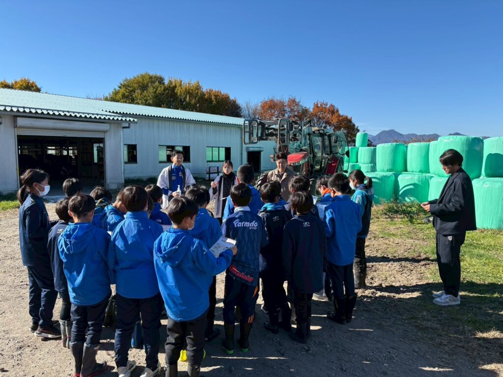 今回は、群馬県吾妻郡・標高850メートルに位置する、協同乳業様の「農協牛乳」を支える酪農地のひとつである「富澤牧場」様を訪問。当日は、U-12の選手約20名に加え、代表取締役社長兼GMの細貝も参加し、酪農の現場に触れる貴重な機会となりました。