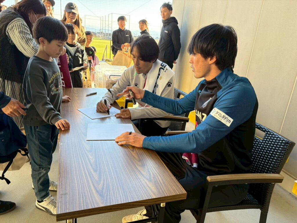 また、サッカー教室の終了後には、細貝社長と青木選手によるサイン会も実施。参加者の皆さまと交流しながら、笑顔あふれる時間となりました。