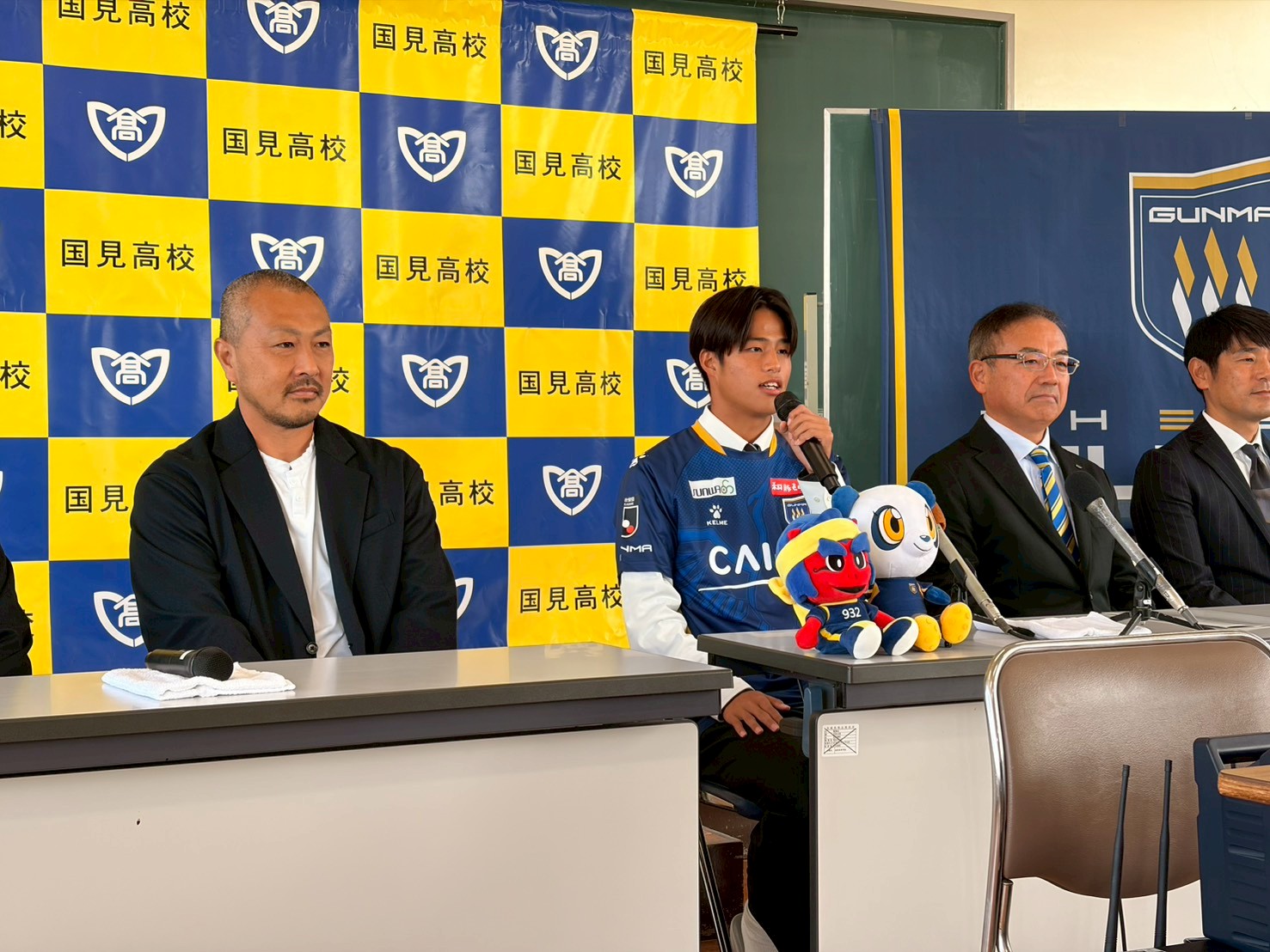 2026シーズンよりザスパ群馬へ加入が内定した、長崎県立国見高校(以下、国見高校)所属・原田高虎選手の加入内定会見が、本日(11/21)、国見高校にて開催されました。
