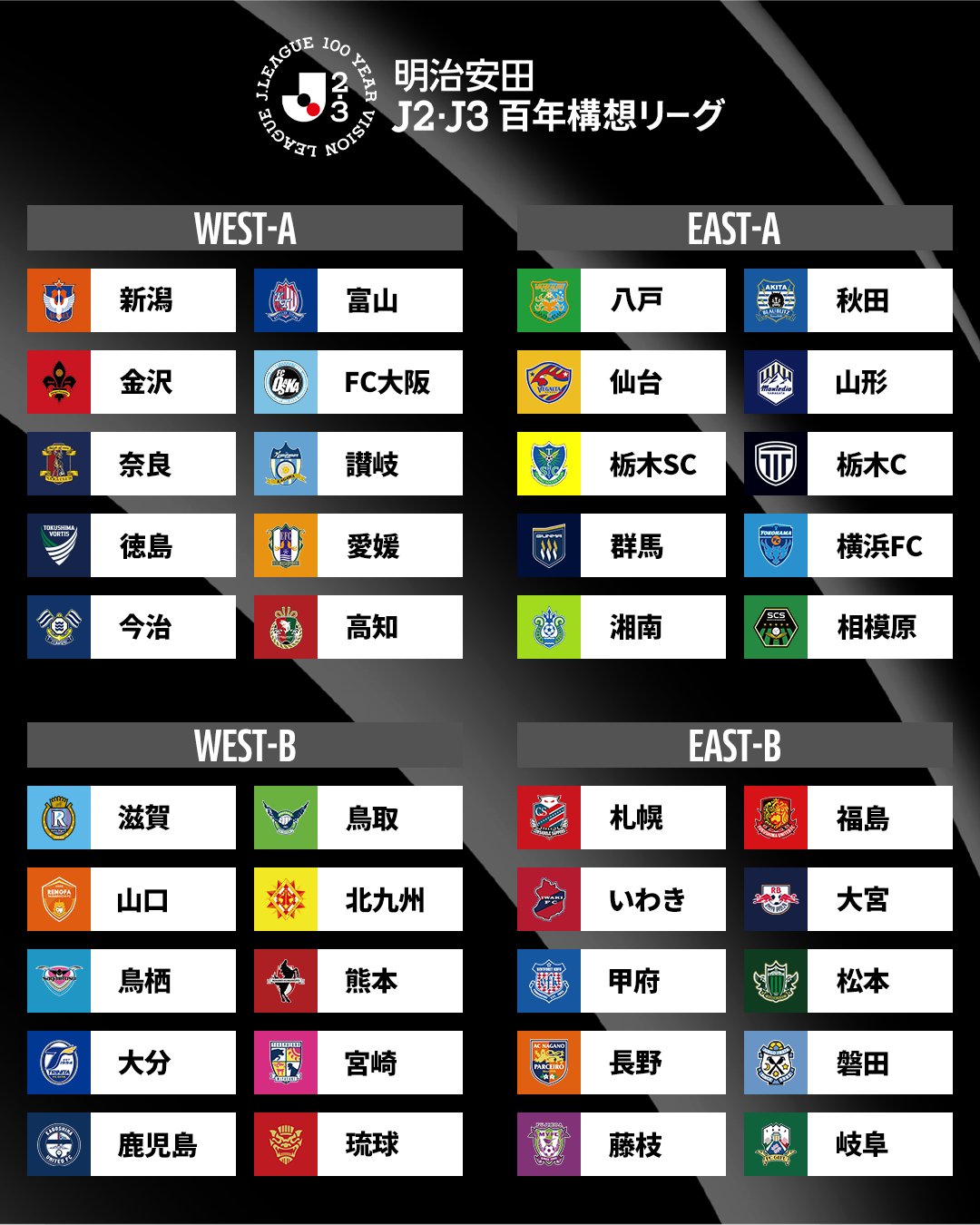 明治安田J2・J3百年構想リーグ:EAST-A、EAST-B、WEST-A、WEST-B