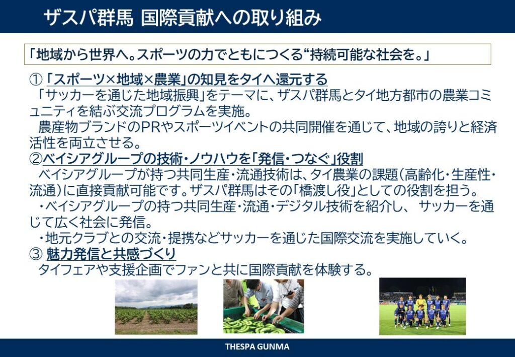 本大会は、スポーツを通じて国際的な相互理解を深め、子どもたちが異なる文化に触れながら成長する機会を創出することを目的にしており、開催背景には株式会社ザスパが属するベイシアグループが、長年にわたりタイとの間に築いてきた継続的な交流と協力関係があります。