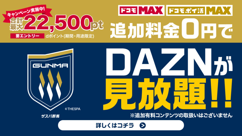 ザスパ群馬は、株式会社NTTドコモとの協業により、「ドコモ MAX」「ドコモ ポイ活 MAX」ご契約者様を対象としたキャンペーンを実施いたします。