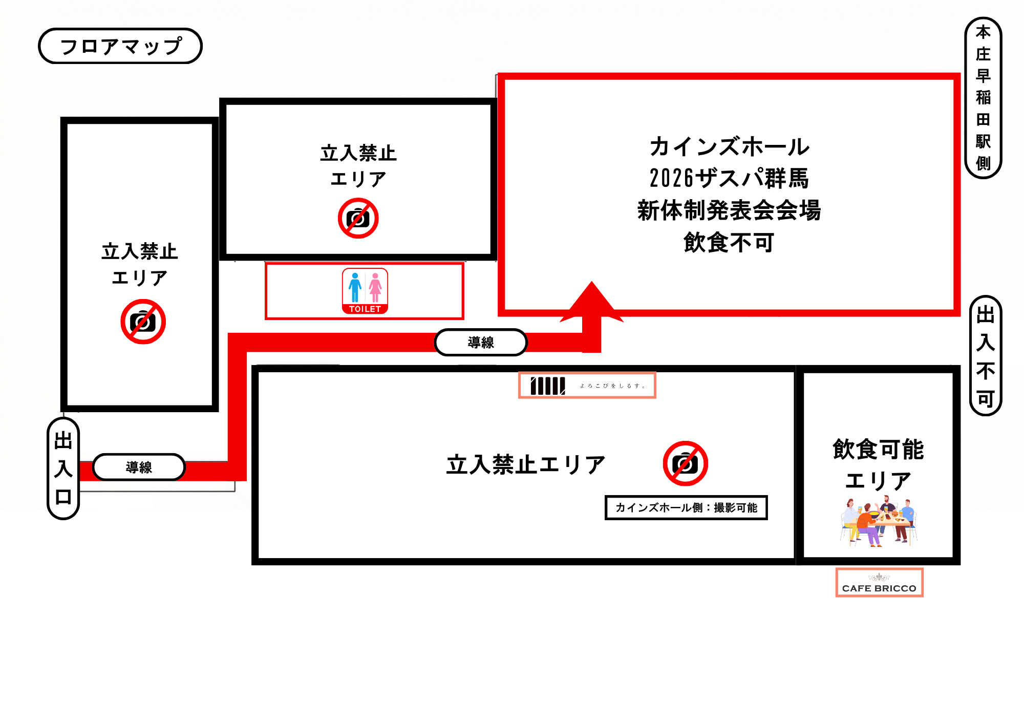 ※図面左手の駐車場側の出入口からご入場いただけます。本庄早稲田駅側の正面出入口は施錠されておりご入場いただけません