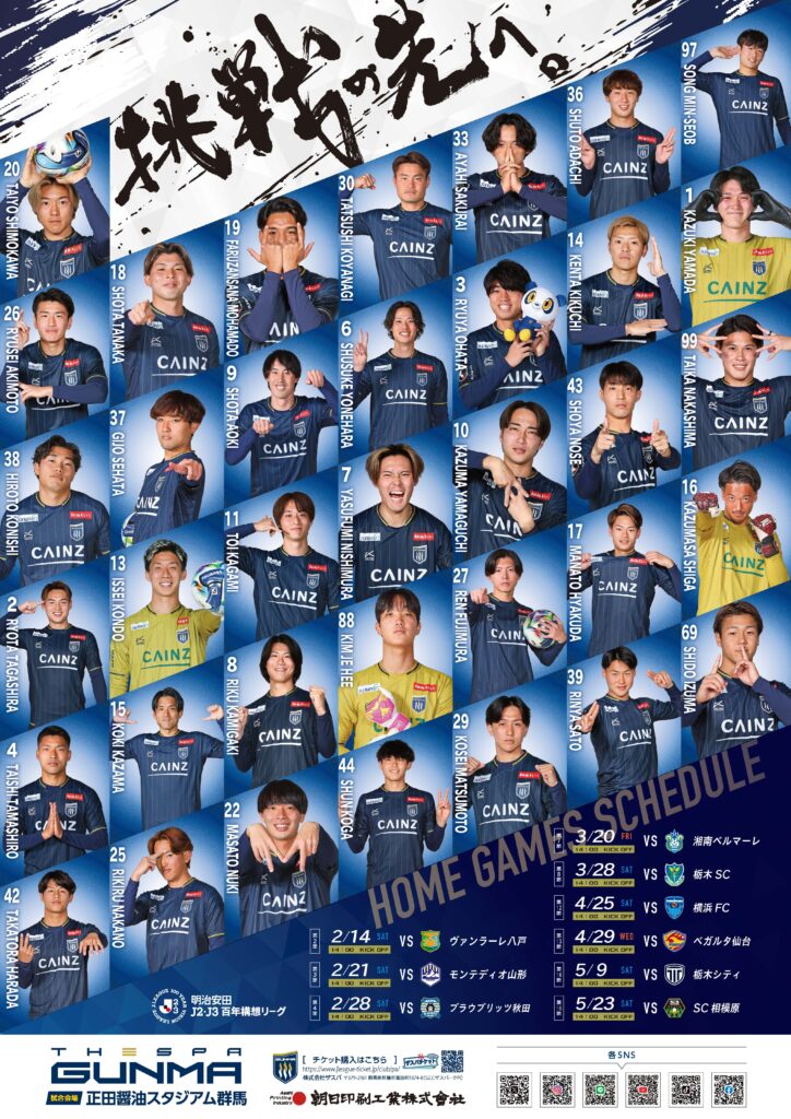 ついに、2026シーズンをともに戦う36名の仲間がそろいました。ザスパ群馬を応援してくださる皆さまに、いち早く選手の特徴を知ってもらうべく、個性あふれる写真をポスターに起用させていただきました。