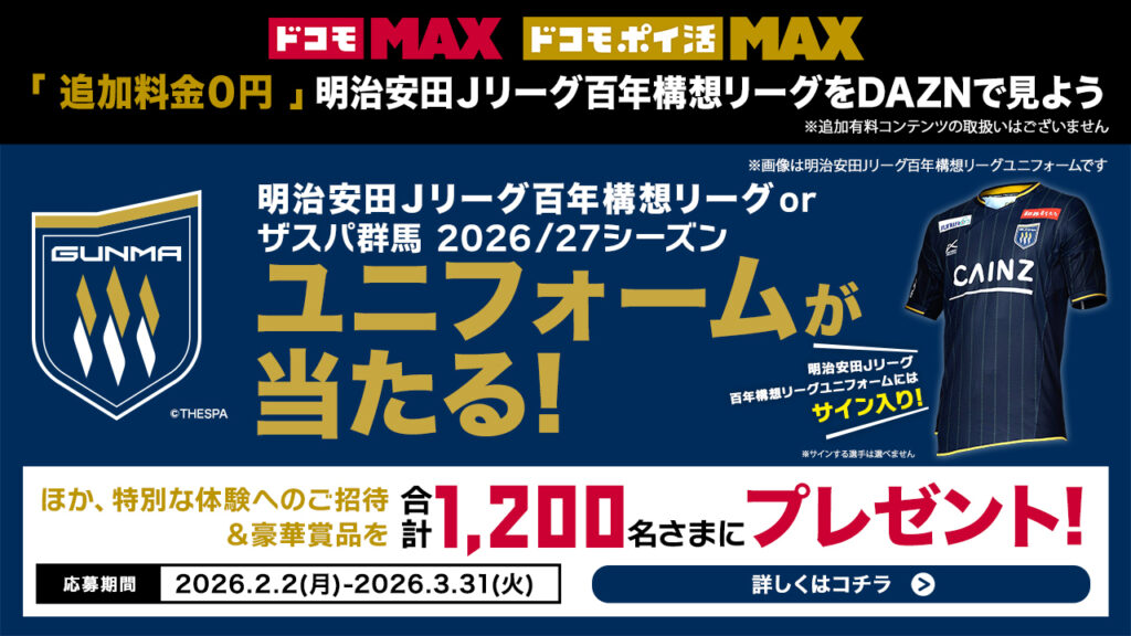 明治安田Jリーグ百年構想リーグがいよいよ開幕となるこの機会に、ぜひ本キャンペーンにご参加いただき、ザスパ群馬への応援・ご支援をよろしくお願いいたします。