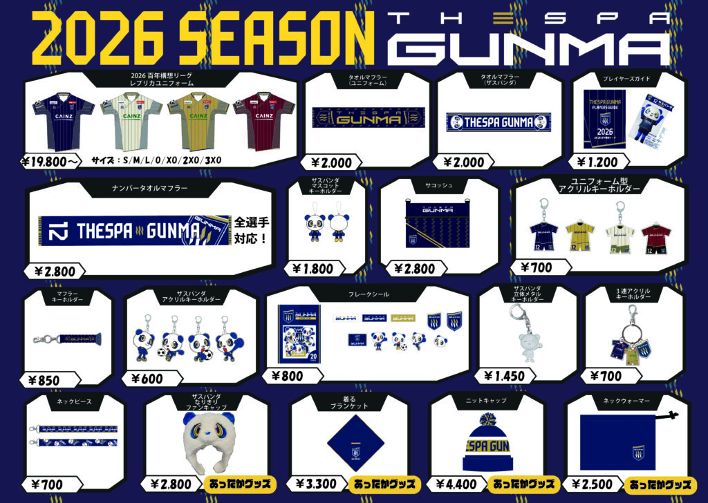 応援グッズの定番となる、マフラータオルやザスパンダグッズを含めた、計14アイテムが新登場! ぜひ、グッズブースへお越しください!