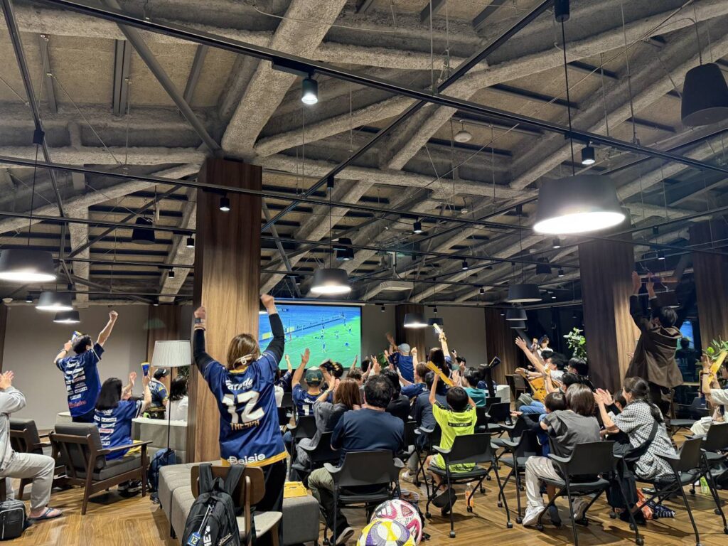 ①2階コミュニティスペース ※コミュニティスペース開場時間:キックオフ1時間前