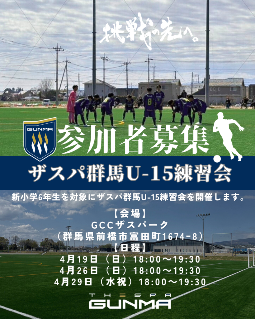 「2026年 ザスパ群馬U‐15練習会」参加者募集のお知らせ