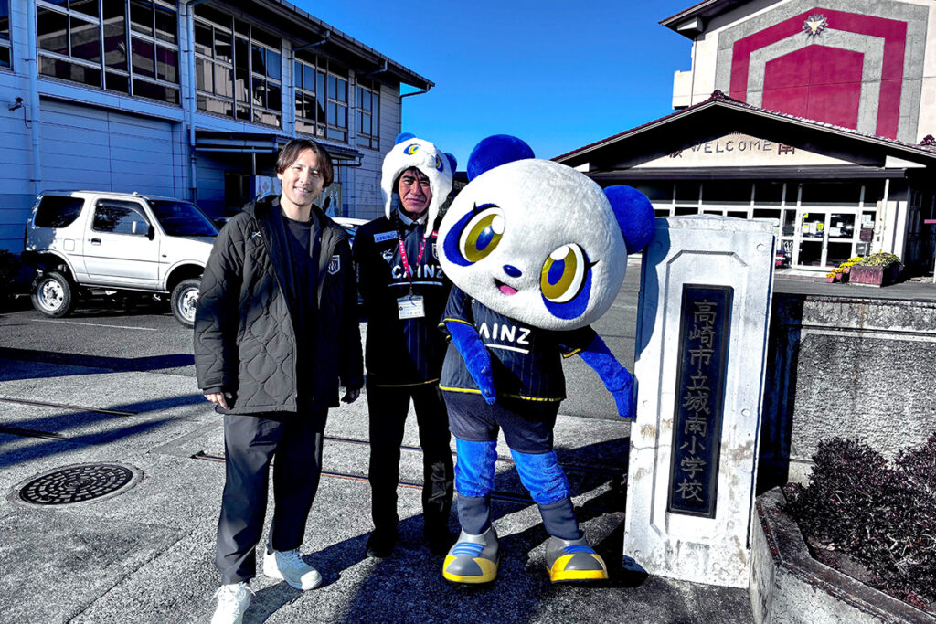 朝のあいさつ運動にはザスパンダも参加。登校してくる子どもたちはザスパンダを見つけると笑顔で近づき、元気いっぱいにあいさつをしてくれました。途中には海外の方に道を尋ねられる場面もあり、細貝社長が通訳をするという思わぬハプニングも。朝から和やかな雰囲気の時間となりました。
