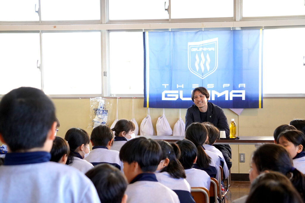ザスパ群馬はこのたび、高崎市立城南小学校を訪問し、あいさつ運動、講演会、スマイルキッズキャラバン(サッカー教室)を実施しました。