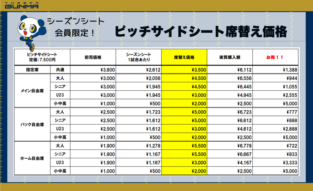 このたびザスパ群馬では、一般販売しておりますピッチサイドシートに関しまして、2026シーズンシート会員様限定で、以下の対象ホームゲームでお得に席替えいただけるキャンペーンを席数限定で実施いたします!