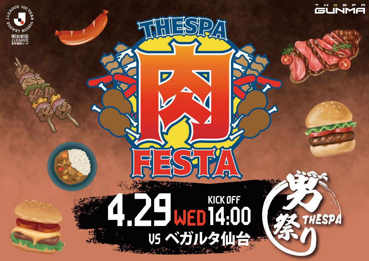 4月29日(水祝)開催の明治安田J2・J3百年構想リーグ第13節 ベガルタ仙台戦にて、「THESPA肉FESTA2026」を実施いたします。